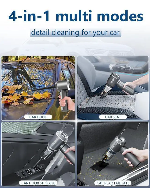 Overall, this handheld vacuum cordless stands out with its compact and portable design, powerful suction, multi-functionality, impressive battery life, and user-friendly features, making it a highly practical car cleaning tool.