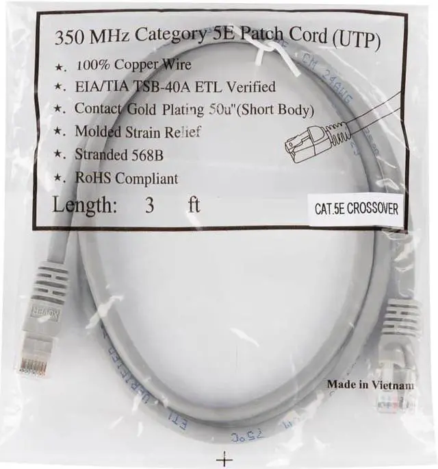An Ethernet Crossover cable is used to connect two PCs directly together, without using a hub or switch in between. Monoprice Cat5e fixed length network cables are the perfect combination of value and performance. Available in a large assortment of colors and lengths, we have a cable to fit every situation. Each cable is made of 24AWG stranded pure copper conductor pairs with 50µm gold plated contacts (short body). Most budget cables skimp with only 10µm. Each cable features color matched, snagless, strain relief boots. Monoprice Cat5e and Cat6 cables are made of 100 Percent bare copper wire, as opposed to copper clad aluminum (CCA) wire, and are therefore fully compliant with UL Code 444 and National Electrical Code TIA-568-C.