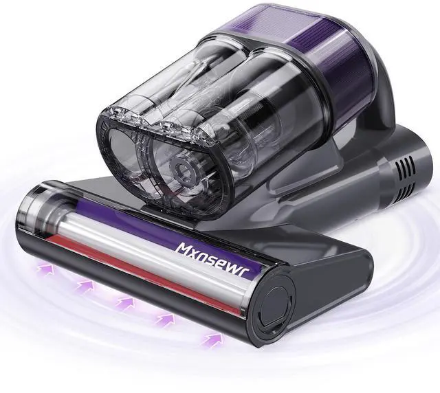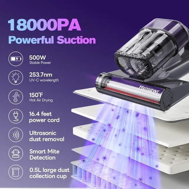 Mattress Vacuum Cleaner, Ultrasonic Bed Vacuum Cleaner with 18Kpa Strong Suction, 150°F Heat & 253.7nm UV-C Light, Intelligent Dual Cup, One-Click Dust Removal for Bed, Dust, Pet Hair, Grey