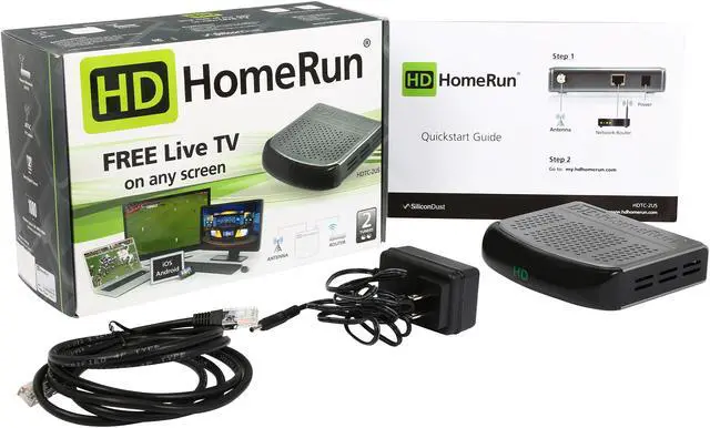 | Specifications | Compatibility With: UPnP compatible hardware/software: -Smart TVs -Blu-ray Players / Media Players -VLC, XBMC, Plex -Game Consoles Windows Media Center (7/8) MythTV NextPVR Android devices iOS devices MPEG2 and MPEG4/H.264 AVC, SD and HD channels 2 tuners - receive 2 channels at once Hardware conversion to H.264 AVC 100baseTX high speed network |