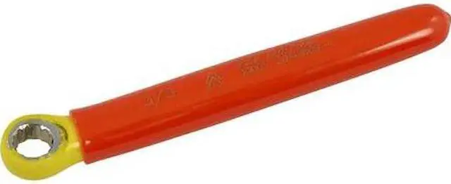 Drive Type: 12 Point. Features an orange top insulation layer, and a second yellow layer that also serves as a visual safety indicator. Provides user protection for up to 1000 V. Individually insulated and tested to ASTM F1505 standards.
