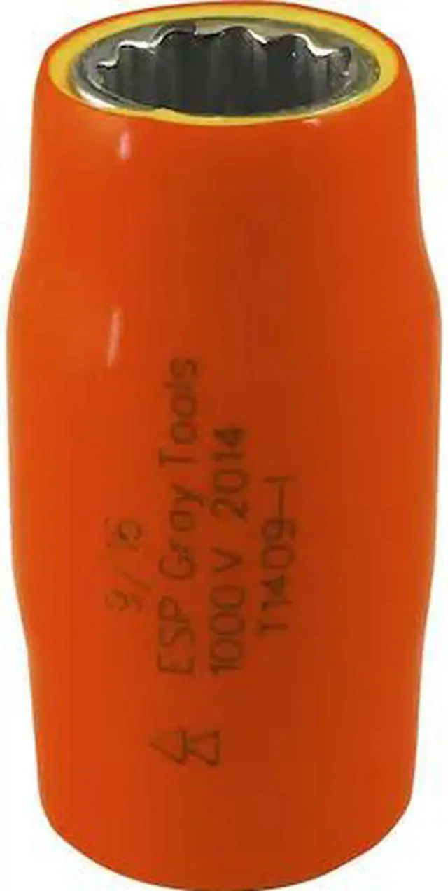 Hex Size: 9/16". Features an orange top insulation layer, and a second yellow layer that also serves as a visual safety indicator. Provides user protection for up to 1000 V. Individually insulated and tested to ASTM F1505 standards.