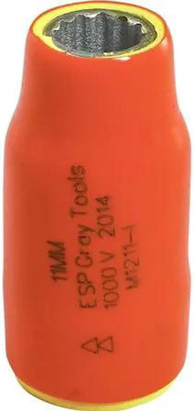 Drive Type: 12 Point. Features an orange top insulation layer, and a second yellow layer that also serves as a visual safety indicator. Provides user protection for up to 1000 V. Individually insulated and tested to ASTM F1505 standards.