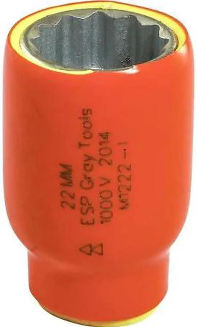Drive Type: 12 Point. Features an orange top insulation layer, and a second yellow layer that also serves as a visual safety indicator. Provides user protection for up to 1000 V. Individually insulated and tested to ASTM F1505 standards.