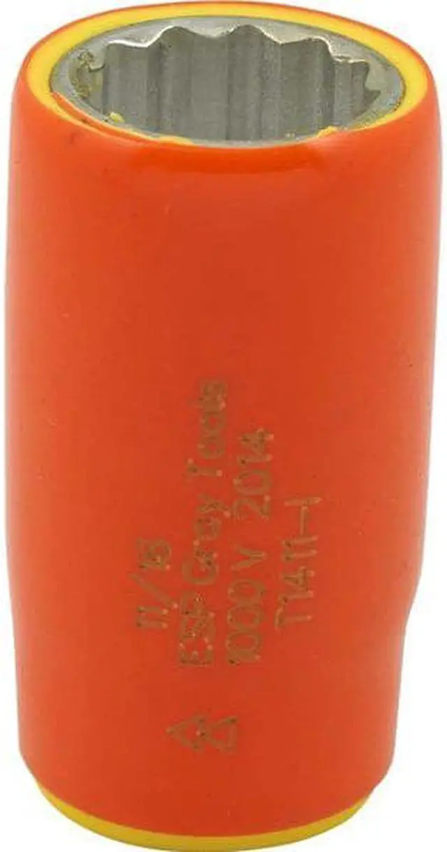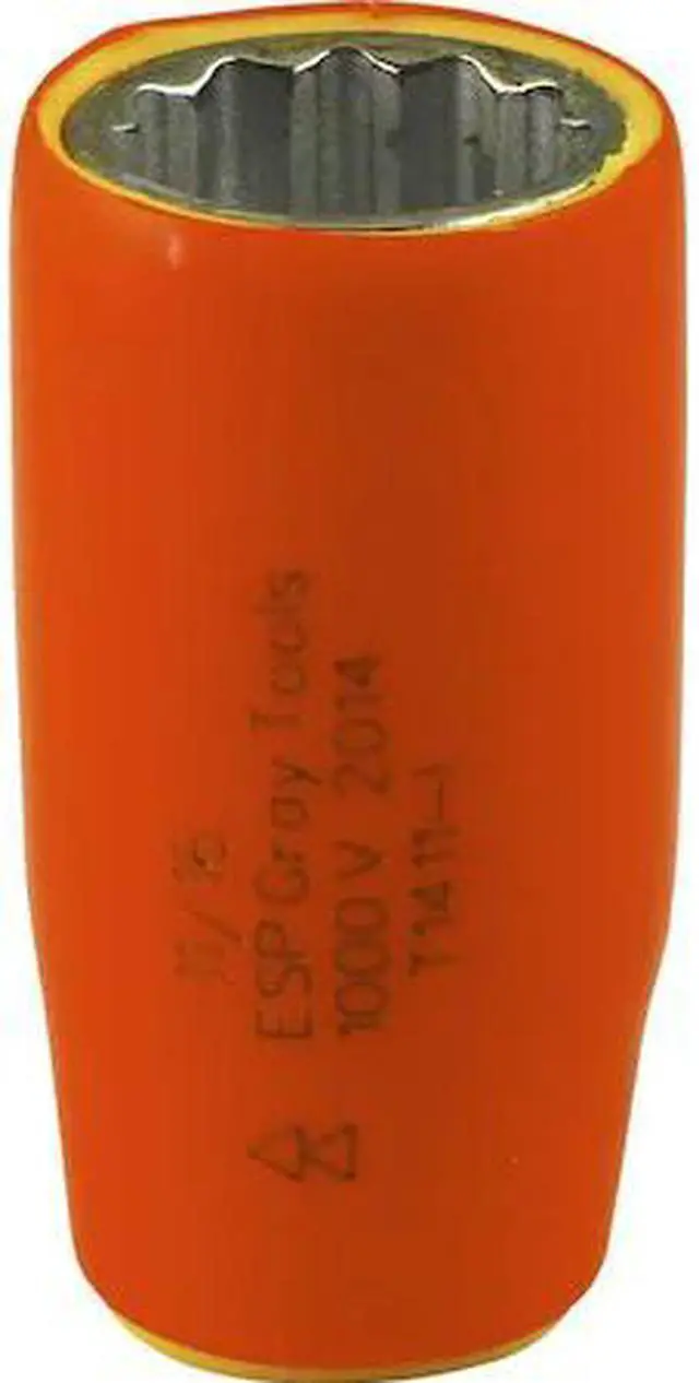 Hex Size: 11/16". Features an orange top insulation layer, and a second yellow layer that also serves as a visual safety indicator. Provides user protection for up to 1000 V. Individually insulated and tested to ASTM F1505 standards.