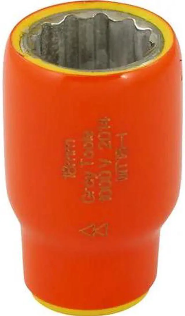 Drive Type: 12 Point. Features an orange top insulation layer, and a second yellow layer that also serves as a visual safety indicator. Provides user protection for up to 1000 V. Individually insulated and tested to ASTM F1505 standards.