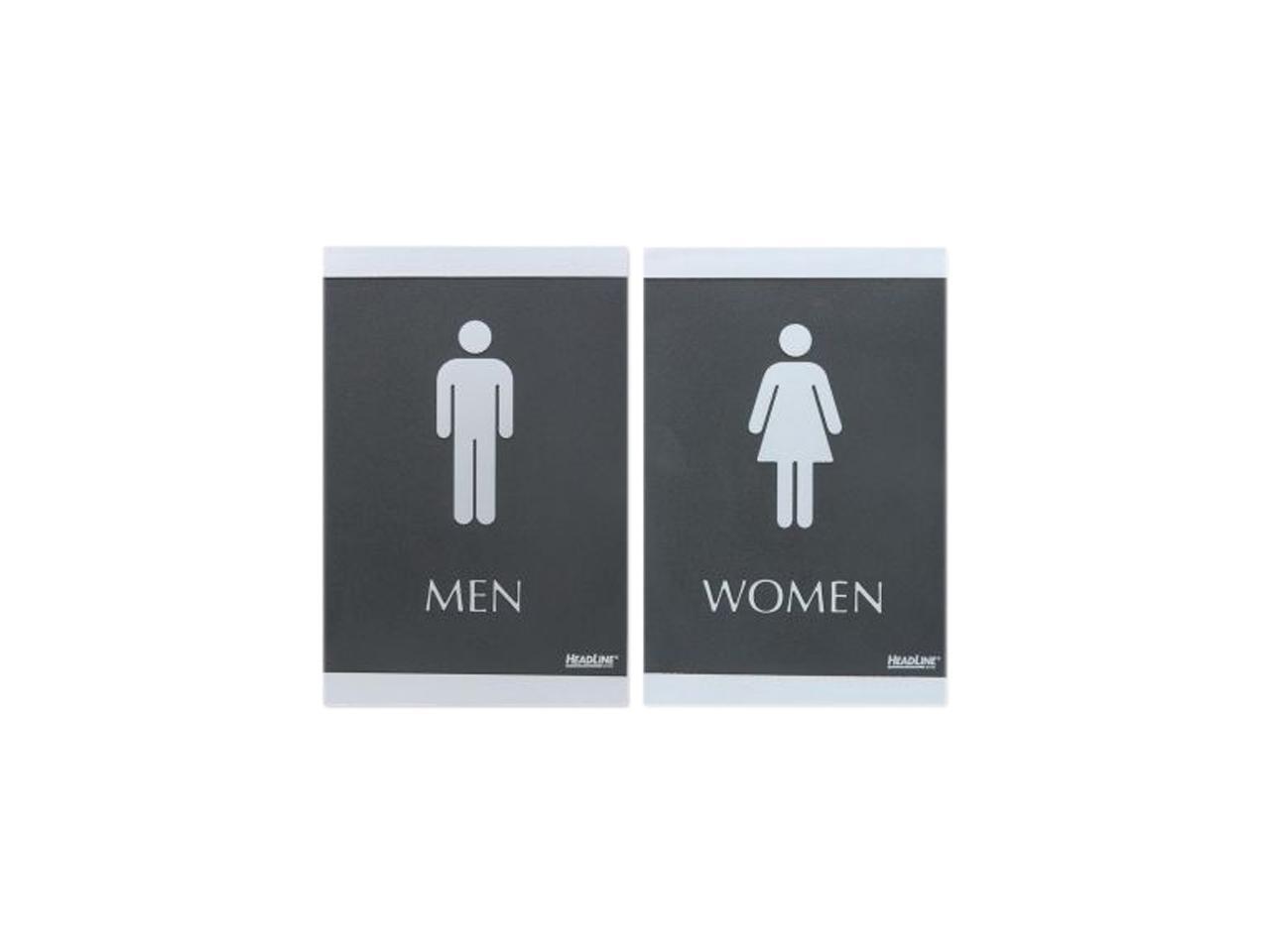 U.S. Stamp & Sign 2 ADA Signs "MEN" "WOMEN" Adhesive 6"x9" Silver/BK 4248