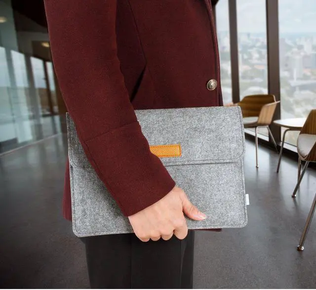 Premium felt exterior and soft flocking lining deliver a sleek finish, gently touch to your device, defending daily dust, wear and tear, scratches, etc. Every stitch is finished off with punctilious detailing without any potential bursting.