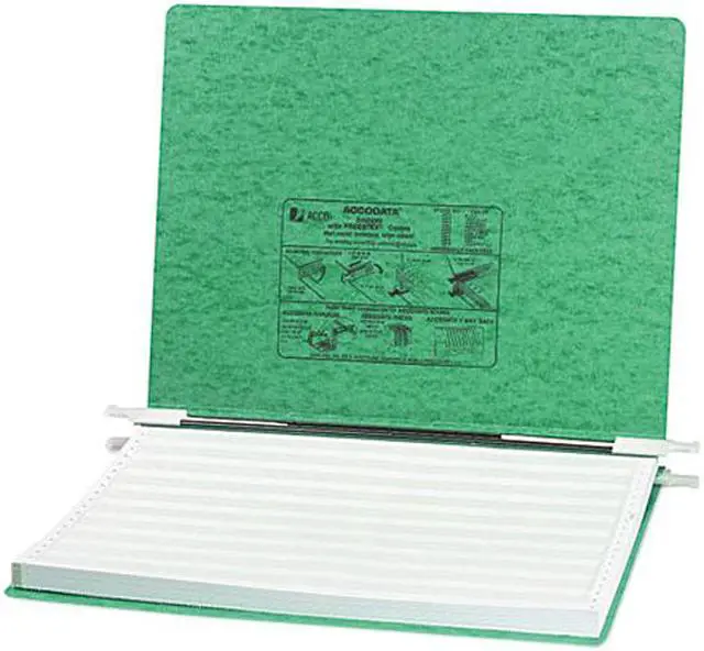 Hanging data binder features Presstex covers and storage hooks to secure up to 6" of unburst sheets. Design is top-loading and bottom-loading. Acrylic coating on binder provides a water-resistant cover. Retractable filing hooks are designed for both single-point filing and a drop file system. These flexible nylon posts adjust to hold up to 6" of sheets attached in continuous form. Data binder accommodates the following center posts: 14-3/8", 13-1/8", 11-1/2", 10-1/2", 9-1/2", 8-1/2", and 7".