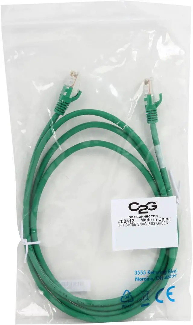 C2G 00412 Cat5e Cable - Snagless Unshielded Ethernet Network Patch Cable, Green (6 Feet, 1.82 Meters)