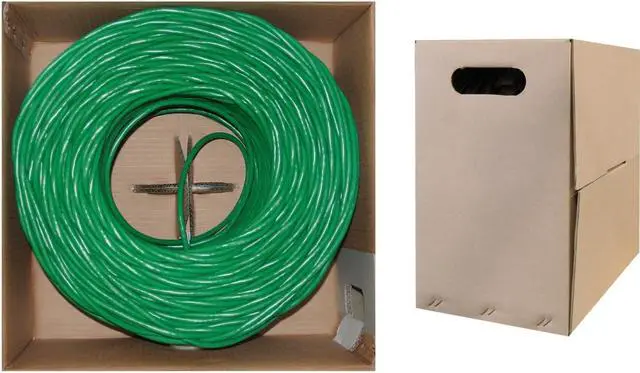 Bulk Cat5e Green Ethernet Cable, Solid, UTP (Unshielded Twisted Pair), Pullbox, 1000 foot