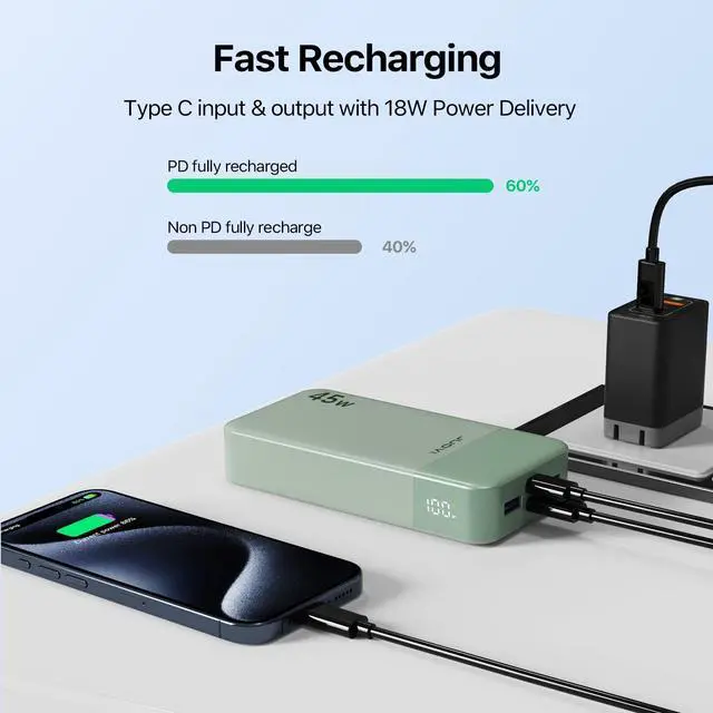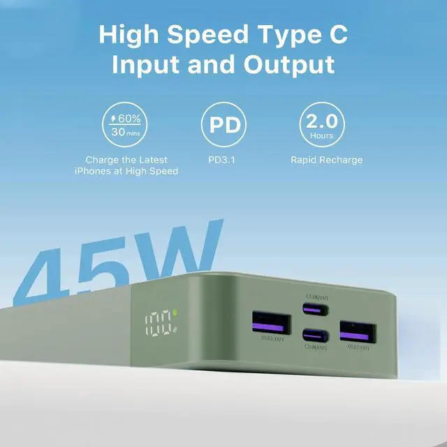 Type-C input: 5V/3A, 9V/3A, 12V/3A, 15V/3A, 20V/2.25A; 45W(max)