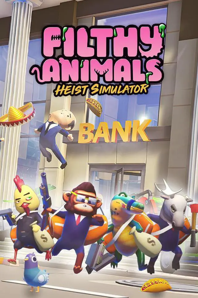 Filthy Animals is a chaotic single-player/co-op heist game for up to 4 players. Become a mutant animal working for criminal mastermind Tony as you steal, fight, fall over, and eat tacos. Solve puzzles and avoid security before making off with the loot, ya Filthy Animal!