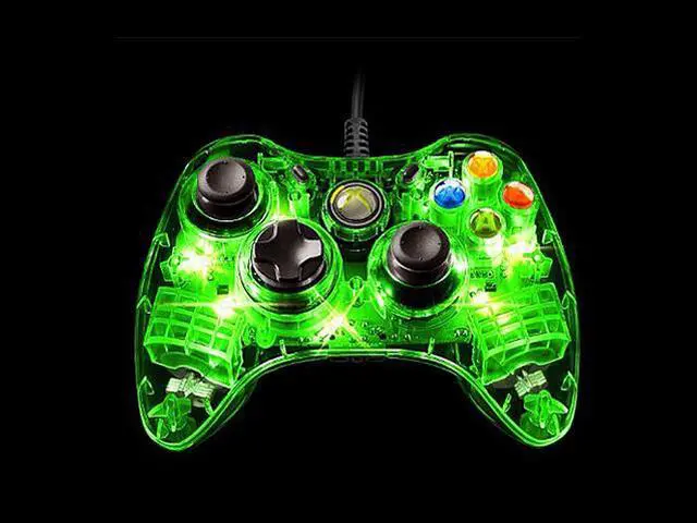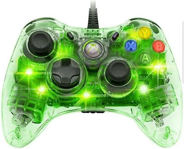 | Features | This Xbox 360 Afterglow Controller delivers gamers a quality experience and a unique look. It features innovative form, features and radiant aesthetics, including multitudes of bright LEDs that glow through its transparent housing. The player can adjust the LED settings with three lighting modes: on, off and pulse. This officially licensed game controller also has Smart Track technology for improved analog performance and a 10' cord with breakaway. Delivers gamers a quality experience and a unique look Controller features innovative form, features and radiant aesthetics Multitudes of LEDs glow inside this Xbox 360 green controller Xbox 360 Afterglow Controller is officially licensed by Microsoft Allows the player to adjust the LED settings with 3 lighting modes: on, off and pulse Has a 10' cord with breakaway Features Smart Track technology for improved analog performance |