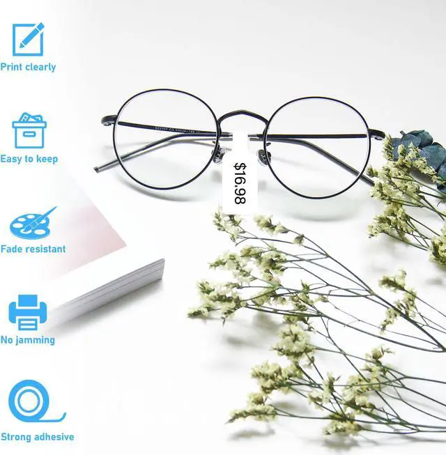 • These labels are perfect for price tags or for labeling small items like jewelry, eyewear and cables and tagging for other office and home labeling applications.You can print price and material number on these price tags to manage inventory for rings, necklaces, earrings, watches, bracelets