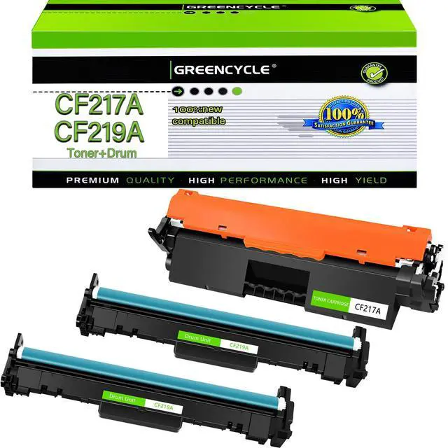 GREENCYCLE Compatible 17A CF217A toner & CF219A 19A DRUM are replacement for the OEM model with the same compatibility and superior quality. We are committed to helping more writers, graphic designers and publishers create excellent work. Clear printout, sharp words and vivid graphics.