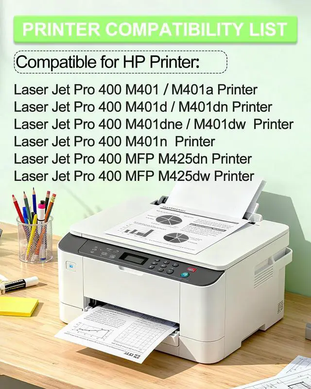 Compatible for HP Printer List: Laser Jet Pro 400 M401 M401a M401d M401dn M401dne M401dw M401n MFP M425dn MFP M425dw Printers.
