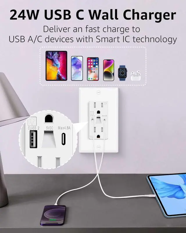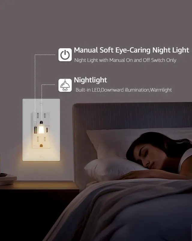 USB C Outlets with Night Lights Built in,Multiple Chargers Not Only A Wall Outlet.