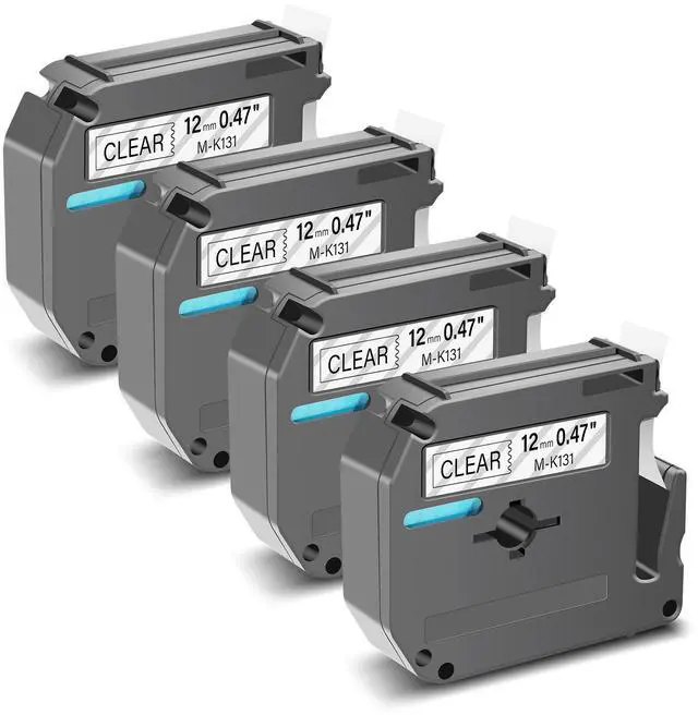 • What's in the box 4 Pack Greencycle Compatible for Brother P Touch M Tape M131 MK131 M-K131 MK-131 Black on Clear Non-laminated standard adhesive tapes Replace for P-Touch Label Makers. Color: Black Text on transparent Background; Width: 12mm 1/2 inch (0.47"), Length: 26.2 feet (8 meter) each
