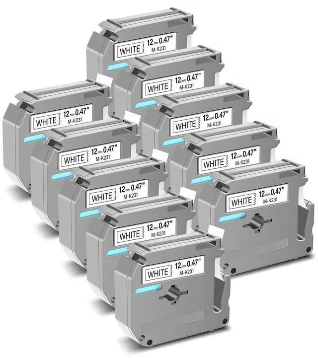 • What's in the box 20 Pack Greencycle Compatible for Brother P Touch M Tape M231 MK231 M-K231 MK-231 Black on White Non-laminated standard adhesive tapes Replace for P-Touch Label Makers. Color: Black Text on transparent Background; Width: 12mm 1/2 inch (0.47"), Length: 26.2 feet (8 meter) each