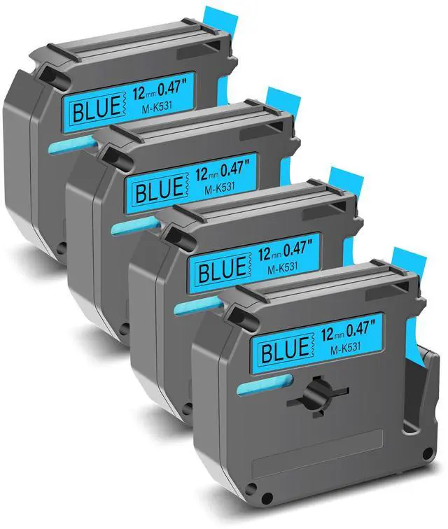 • What's in the box 4 Pack Greencycle Compatible for Brother P Touch M Tape M531 MK531 M-K531 MK-531 Black on White Non-laminated standard adhesive tapes Replace for P-Touch Label Makers. Color: Black Text on transparent Background; Width: 12mm 1/2 inch (0.47"), Length: 26.2 feet (8 meter) each