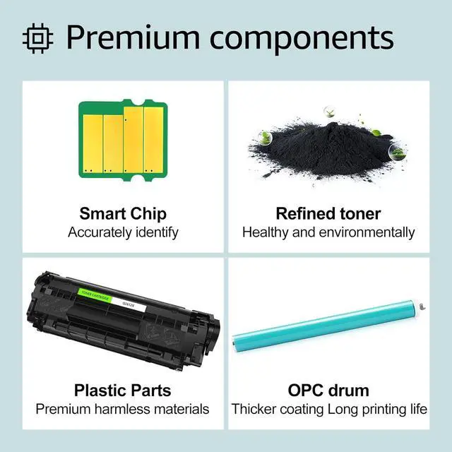GREENCYCLE Compatible for HP 12A Q2612A black toner cartridge is the replacement of the OEM model with the high-standard of quality and compatibility. Clear printout, sharp words and vivid graphics.