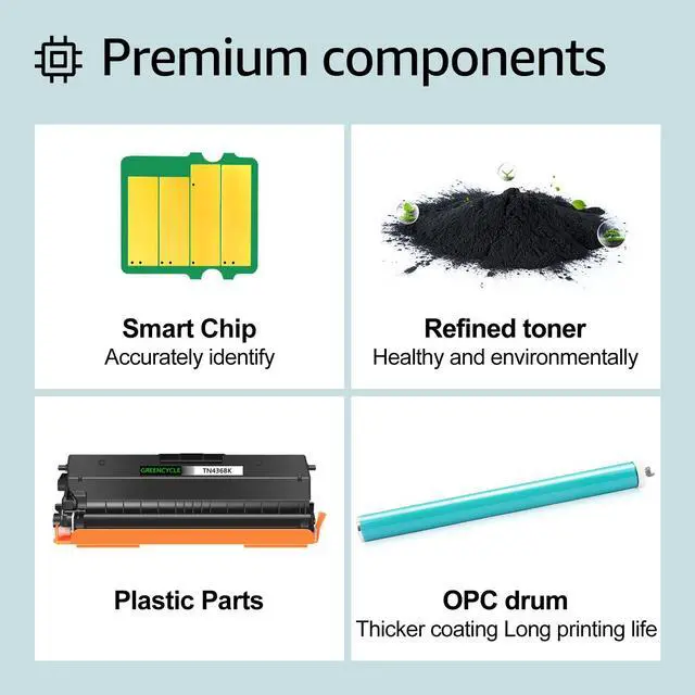 GREENCYCLE compatible TN436 toner cartridge is a replacement for the OEM model with the same compatibility and superior quality. We are committed to helping more writers, graphic designers and publishers create excellent work. We pay attention to more details to ensure you experience superior print quality.