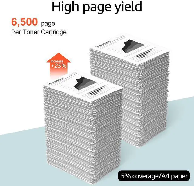 • Page Yield: Up to 6,500 pages for black toner, 6,500 pages for each color toner (5 percentage coverage on A4 paper)