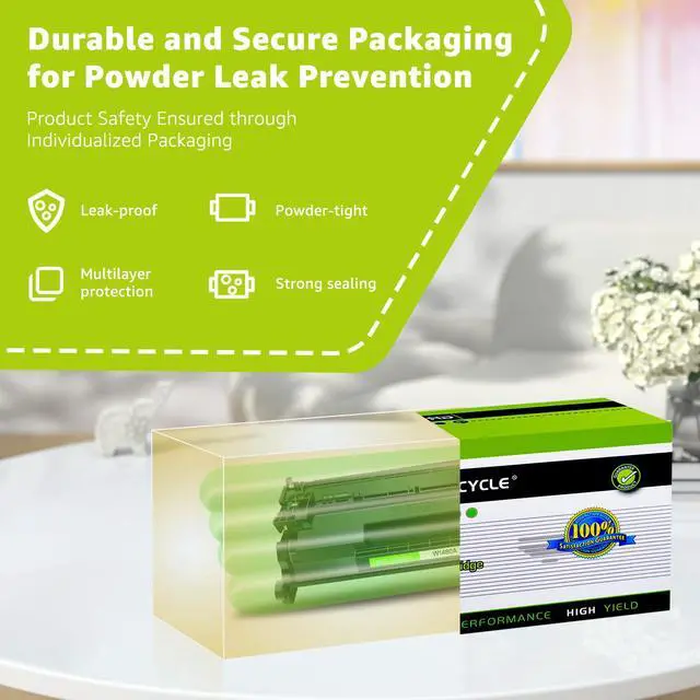GREENCYCLE Compatible for HP 148A W1480A NO CHIP toner cartridge is the replacement of the OEM model with the higher standards of quality and compatibility. Clear printout, sharp words and vivid graphics.