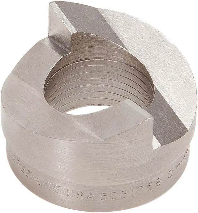 Knockout Punch, For Use With Tool Type Battery-Hydraulic, Manual-Hydraulic, Knockout Punch Component Included Punch, Material Application Aluminum, Brass, Copper, Fiberglass, Mild Steel, Plastic, Maximum Sheet Metal Capacity-Steel 10 ga, Nominal Hole Size 1 23/64 in, Slug Type Splits in Half; Falls Free from Die and Stud, Punch Shape Round, Number of Pieces 1, Includes Draw Stud No, Exact Hole Diameter 1 9/25 in, Maximum Sheet Metal Capacity-Aluminum 10 ga, Series Speed Punch. This item has been restricted from sale in the following state (s): []
