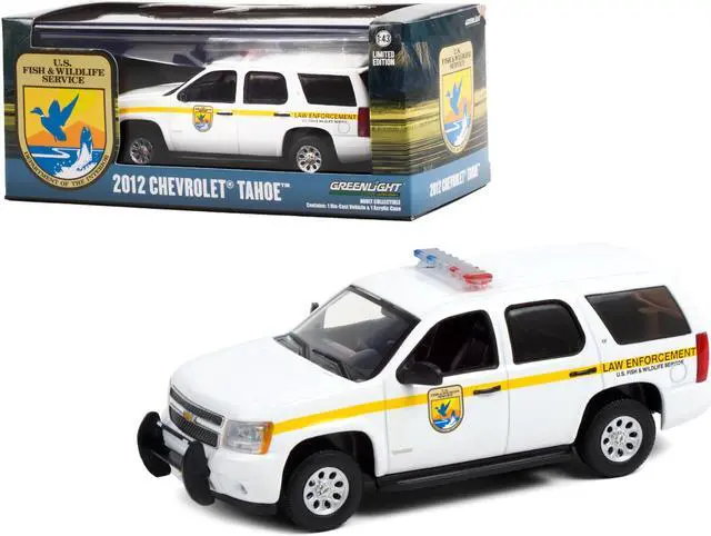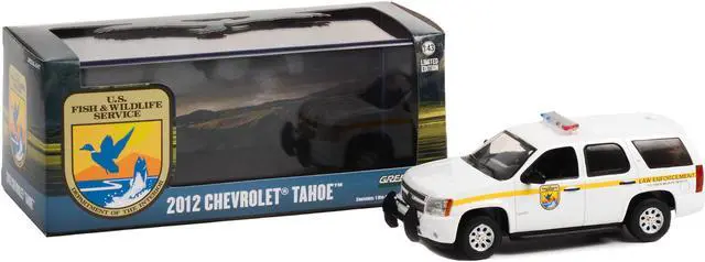 Brand new 1/43 scale diecast car model of 2012 Chevrolet Tahoe White with Yellow Stripes "U. S. Fish & Wildlife Service Law Enforcement" die cast model car by Greenlight.