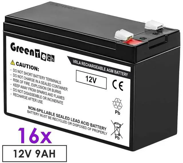 GREENTECH REPLACEMENT DELL 4200W J730N COMPATIBLE BATTERY SET - SET OF 16 BATTERIES (12V, 9AH)