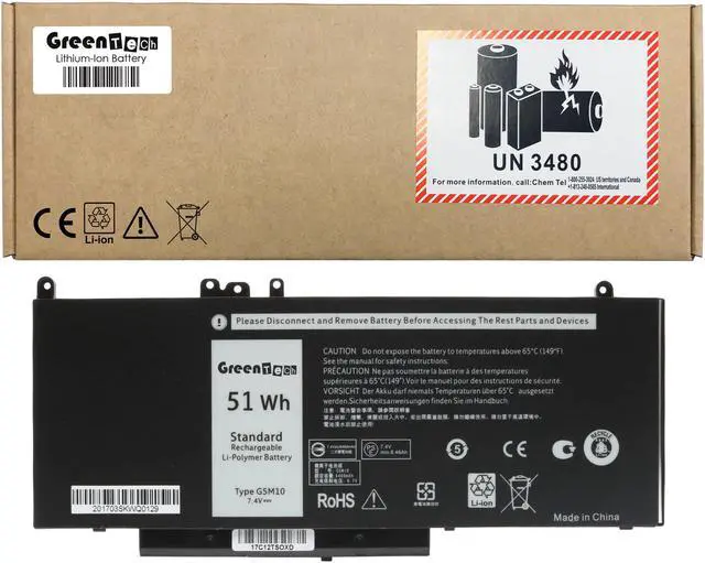 GreenTech New G5M10 Replacement Battery for Dell Latitude E5450 E5550 4 Cell Primary Battery 0WYJC2 8V5GX 7.4V 51Whr