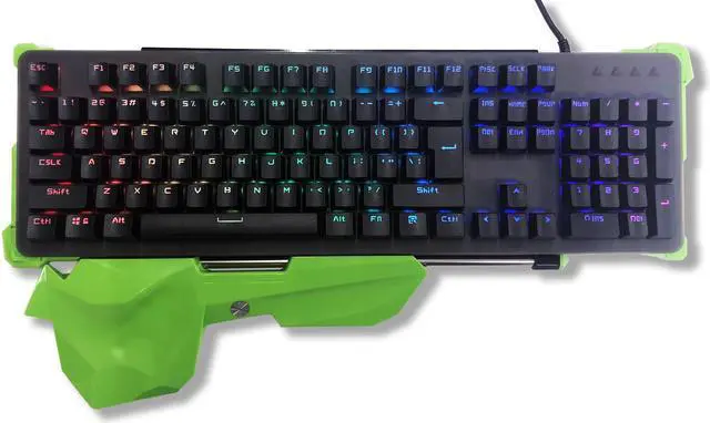 GreenTech RGB Backlit Mechanical Gaming Keyboard with adjustable Green Palm Rest Dust Proof KB-G9