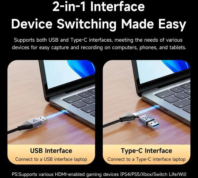 Unlock the full potential of your HDMI devices with the Video Capture. This compact and sleek device allows you to effortlessly capture high-quality video from any HDMI source, such as gaming consoles, cameras, or streaming devices. With its plug-and-play design, you can seamlessly connect it to your computer via USB and start recording or streaming instantly. With 100W Power Deliver (PD),enjoy crystal-clear video and audio capture, making it ideal for content creators, gamers, or anyone looking to preserve precious moments. this portable device is perfect for on-the-go use. Experience the convenience of capturing your favorite content with the Inchino Video Capture.