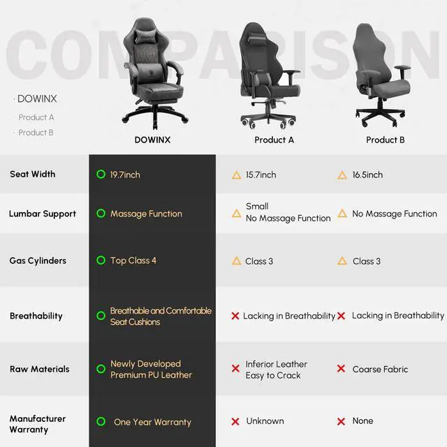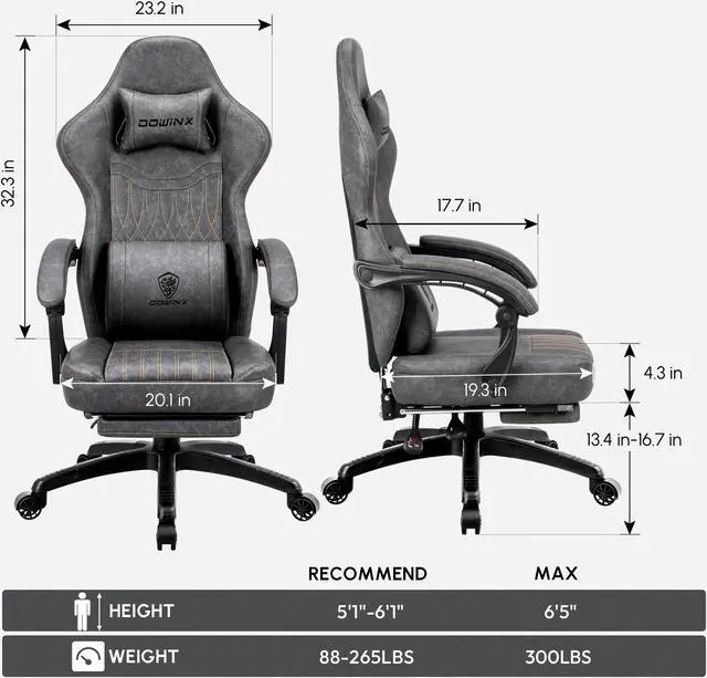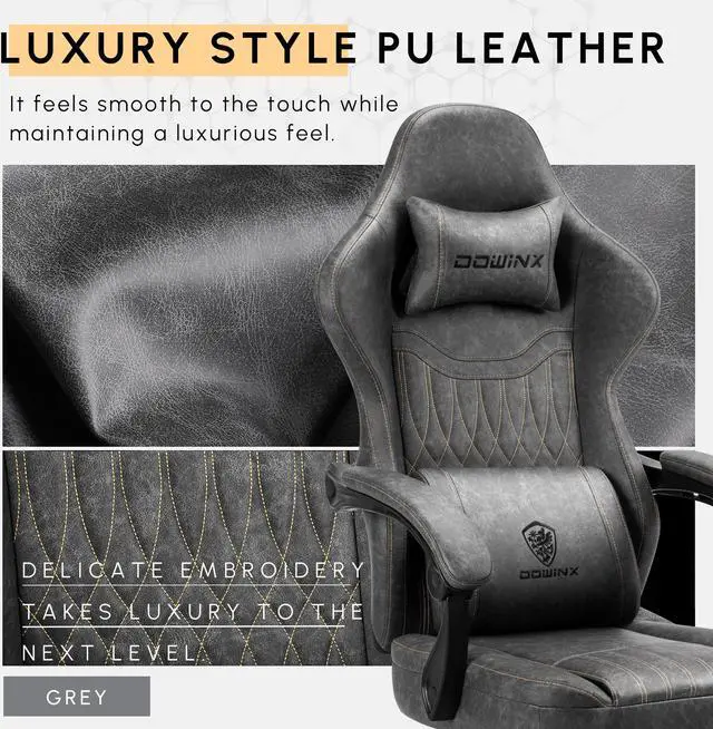 Breathable PU Leather: Crafted with highly breathable PU leather, our gaming chair sets a new standard for ventilation, offering a superior airflow experience that's 33 times more effective than traditional PU leather. Expertly stitched for durability and comfort, the soft and supple PU leather enhances your overall sitting experience, ensuring hours of uninterrupted gameplay or work.