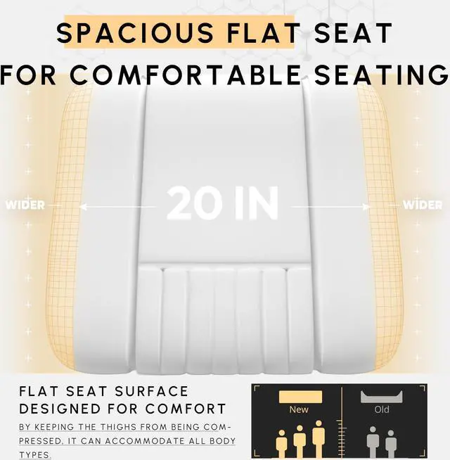 Spacious Seating Area: Designed for ultimate comfort, our gaming chair boasts a flat seat cushion that offers a larger seating area, providing at least 10cm of additional width compared to standard gaming chairs. By eliminating side wings, we've alleviated pressure on the legs, promoting a more relaxed and enjoyable sitting experience during extended gaming sessions.