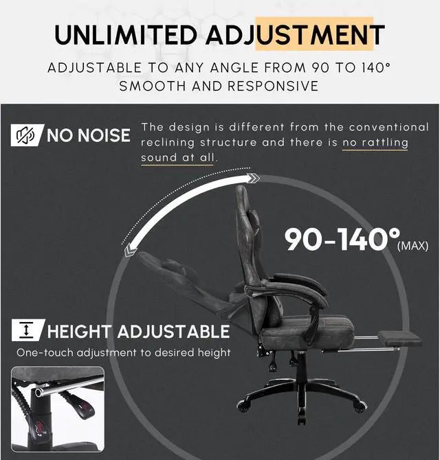 Versatile Functionality: Enjoy effortless mobility with smooth 360-degree swivel wheels that facilitate noiseless movement across any surface. Relax and rejuvenate with the lumbar pillow equipped with a USB cable for soothing massages when fatigue sets in. The backrest tilts from 90 to 135 degrees, catering to various activities such as work, gaming, reading, or napping. Additionally, both the headrest and lumbar pillow are adjustable to accommodate individual preferences for maximum comfort.