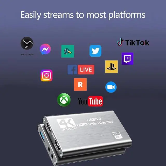 USB 3.0 delivers high-speed sports, making it easier to live stream on Twitch, YouTube, OBS, PotPlayer, and VLC.