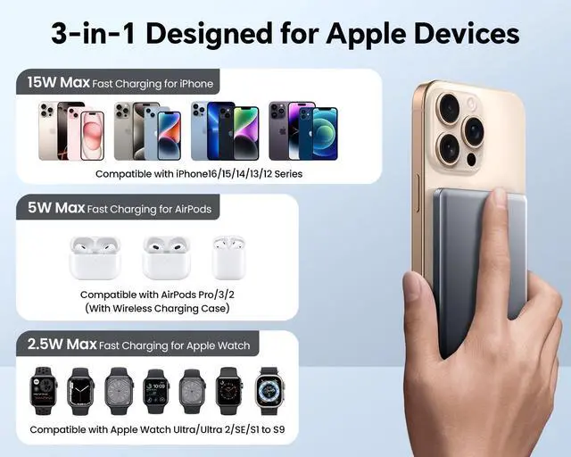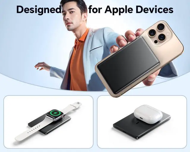 Ultra Slim Magnetic Portable Charger,5,000mAh Wireless Portable Charger with USB-C Cable,Battery Pack for Apple Watch,22.5W Fast Charging Magnetic Power Bank for iPhone 16/15/14/13/12 Pro/Pro Max/Plus