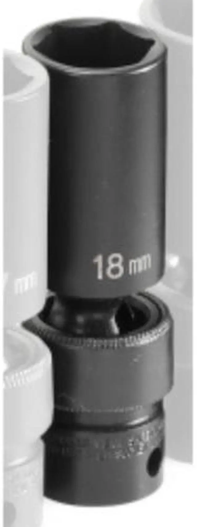 GREY PNEUMATIC 1018UMD 3/8" Drive, 18mm Metric Socket, 6 Points, 3/8"Dx18mm,D