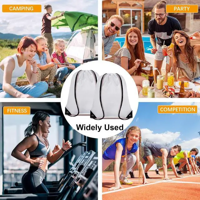 Our drawstring bags include different color combinations, and you can print patters or letters on string bag; Adjustable rope, suitable for most people; Large capacity, can be hold with a variety of daily items, such as: headset, charger, iPad, mobile phone, ; Towel, swimsuit, water cup, umbrella; Snacks, etc. Suitable for a variety of occasions, such as gym, swimming pool, beach, yoga studio, summer camp, party, etc.