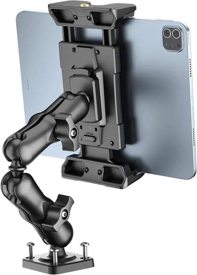 Wide Mounting Range: Tablet mount is designed with 4 holes drilled for mounting on all kinds of cars/boats (dashboards or consoles) as well as smooth flat surfaces such as walls and desktops.