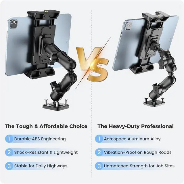 Mount for Truck: iPad holder for car is made of high-quality ABS which can withstand frequent and high-intensity use providing long-lasting quality and excellent performance.