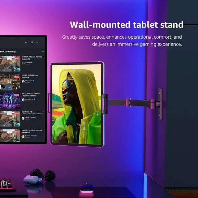 Stability and convenience: The tablet stand is made of high-quality aluminum alloy which is very strong and stable without bending risk. The weight of the product is about 4 pounds which supports folding. Two installation are availableThe BEWISER wall mount tablet holder is easy to install on any wall and comes with mounting hardware included. You can choose to perforate the wall and fix it with expansion screws. Or use 3M stickers to secure it on a smooth surface. It can also be installed at the lower part of the cabinet. Health efficiency