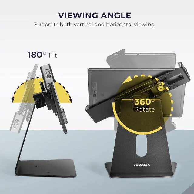 Perfect for Cashiers: Our ipad holder for desk is designed for use in restaurants retail stores small businesses hotels/event staff and home control stations. We recommend using the holder iPad stand with our Volcora cash drawer box and POS products for easy integration and an all-in-one combo.