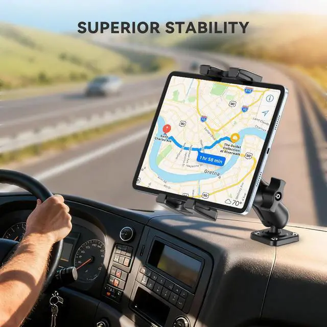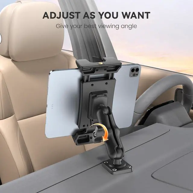 Great View: The tablet car holder has two 360° swivel ball joints and a 4 inch long mounting arm. No matter which direction it rotates you can easily adjust your favorite comfortable angle and the ipad car mount will not block your sight.