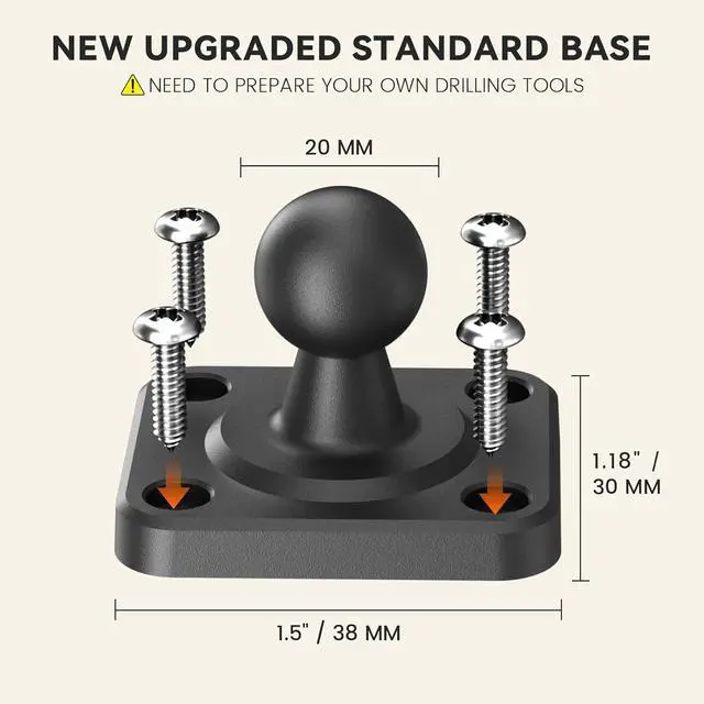 Car Dashboard: Heavy Duty Drill Base - Can be mounted on various cars walls desks or other smooth flat surfaces allowing you to mount your tablet wherever you want. You need to prepare your own punching equipment for the installation of the tablet mount for car.