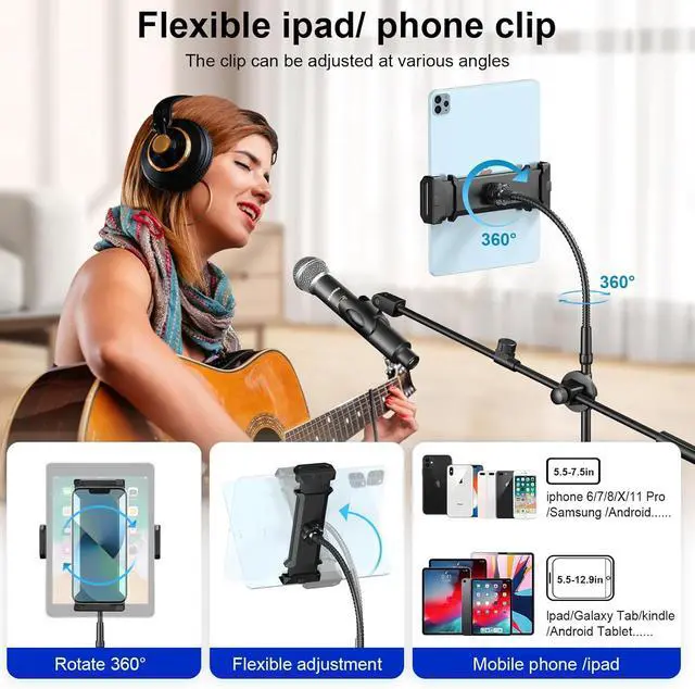 Mic Stand: Support Boom Gooseneck Mic Clips Tablet Phone Holder Free combination; Meet your various needs perfect for stage performances speeches meeting rooms parties weddings karaoke singing or podmic etc.