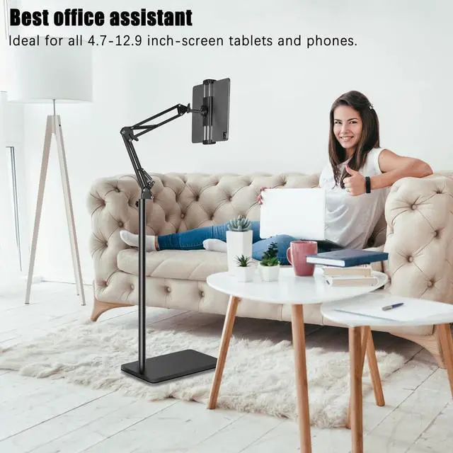)Free Your Hands: When you are lying sitting stand on a sofa or in a bed our flexible tablet floor stand will free your hands and help you find the suitable view to watch movies live streaming vlogging play games or read music scores when practicing guitar or piano.